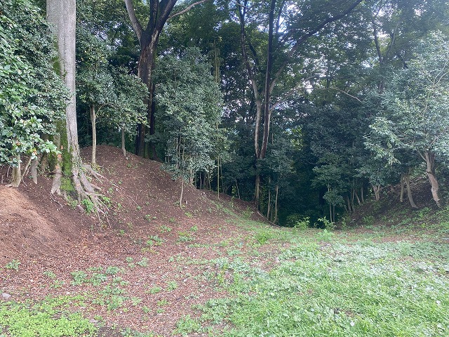 大部分が墓地になっているが、土塁や空堀も一部残る。