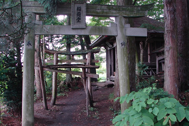 屋敷と堀を挟んだ北東に建つ稲荷社。