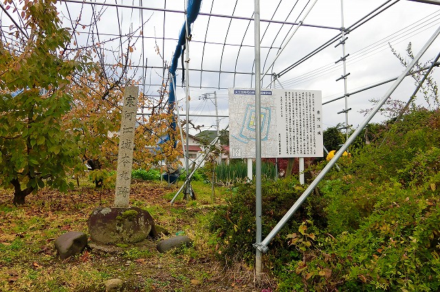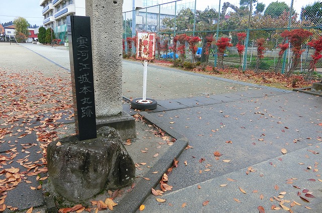 寒河江小学校の東側の入口に立つ本丸跡の碑。