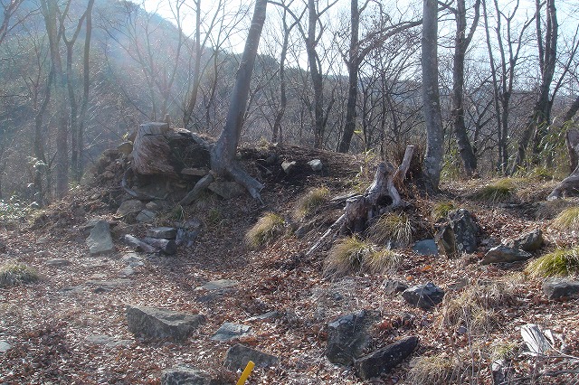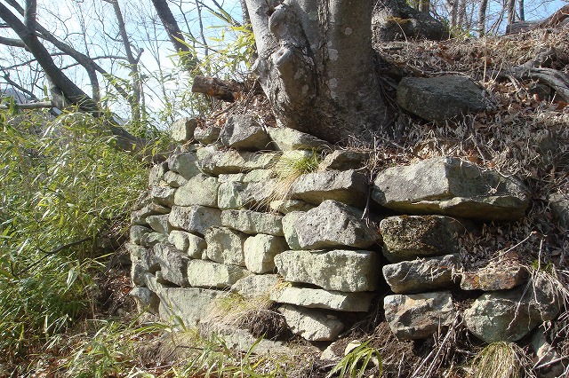 主郭に近いところでは、所々に石積が見られる。