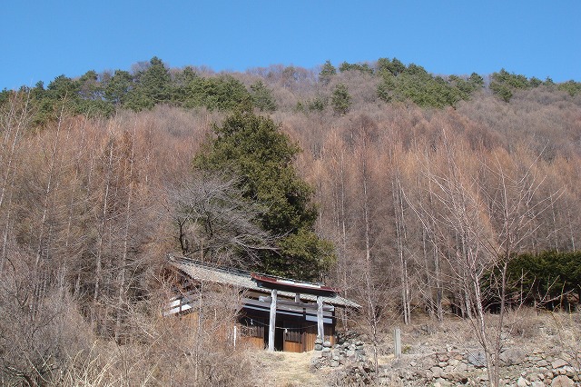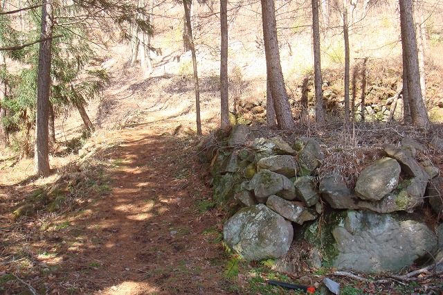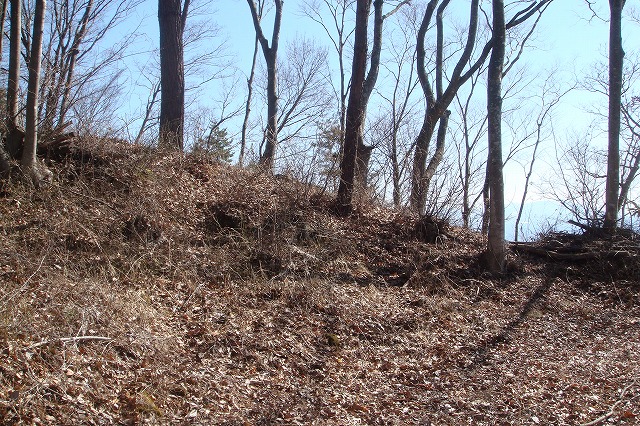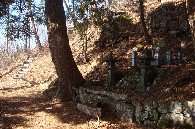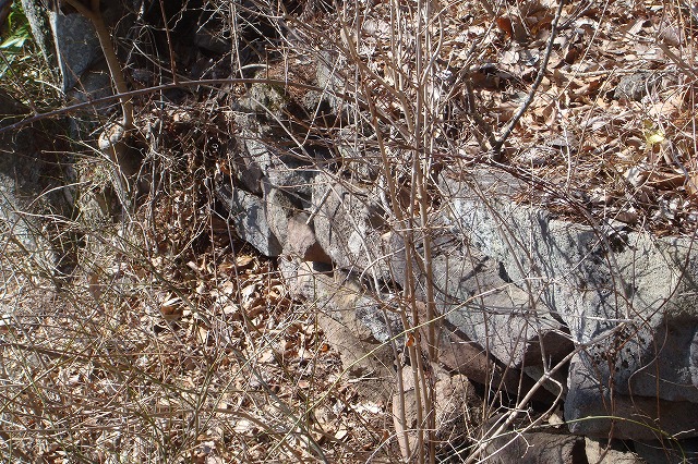 この部分は石積によって造成され、往時は曲輪の一つであったと思われる。