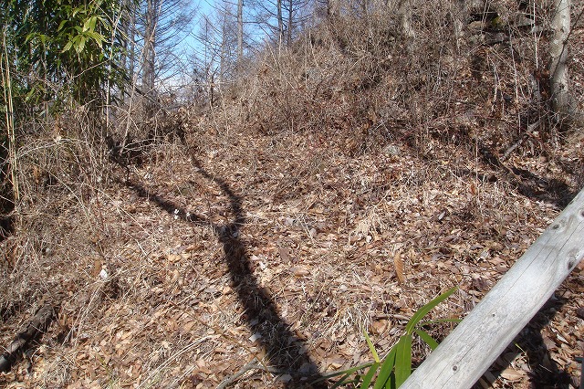 写真の奥へ降りていくと水の手があり、さらに降りると真田氏本城にたどり着く。