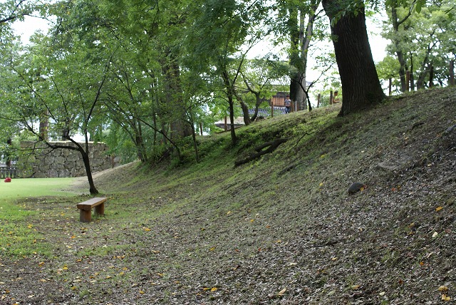二の丸西側の土塁。