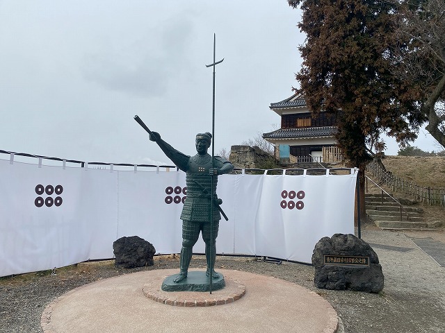 西櫓付近に建てられた真田幸村(信繁)像。