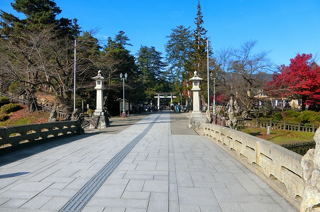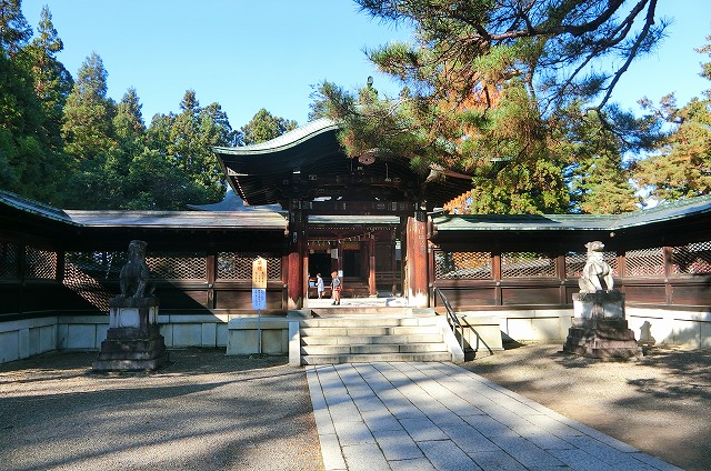 奥に上杉神社の本殿が見える。