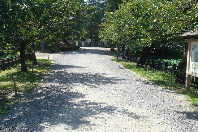 米沢城は、最上川と堀立川に挟まれた平地に築かれた平城で、暦仁元年(1238)に長井郷の地頭に封ぜられた大江時広が築城したと伝えられる。時広は赴任地の地名から長井氏を名乗り、以後150年近く長井氏の支配が続いた。室町時代初期には伊達宗遠が長井広房を追い、米沢は伊達氏の支配下に入った。天文17年(1548)には晴宗が桑折西山城から米沢城へ本拠を移し、永禄10年(1567)には息子の政宗がこの城で生まれている。天正17年(1589)に政宗は芦名氏を破って領地を会津へ広げたが、天正18年(1590)の小田原征伐への遅参による仕置を受けて翌天正19年(1591)に領地を没収され岩出山城へ移封となり、代わって会津に封ぜられた蒲生氏郷が米沢を支配した。文禄4年(1595)の氏郷の急死によって蒲生氏が没落すると、慶長3年(1598)に豊臣秀吉の命で蒲生氏は宇都宮へ転封となり、代わって上杉景勝が越後から会津に入部。米沢城には直江兼続が入った。米沢城は兼続の時代に改修を受け、現在の規模になっている。