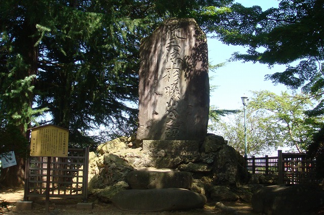 本丸北東端に立つ上杉曦山(13代藩主斉憲)の碑。